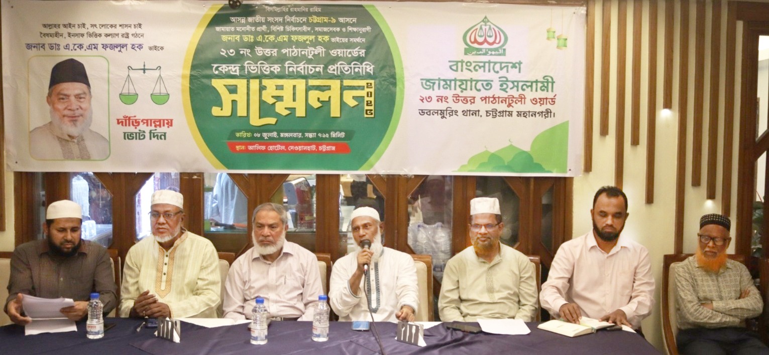 বাংলাদেশ জামায়াতে ইসলামীর কেন্দ্রীয় মজলিসে শূরা সদস্য, চট্টগ্রাম মহানগরীর ভারপ্রাপ্ত আমির ও পরিবেশবিদ মুহাম্মদ নজরুল ইসলাম বলেছেন, ন্যায় ও ইনসাফভিত্তিক রাষ্ট্র গঠনের জন্য ডা. এ কে এম ফজলুল হককে দাঁড়িপাল্লা মার্কায় ভোট দিন। আগামী নির্বাচন হবে জনগণের ভোটাধিকার পুনরুদ্ধারের লড়াই। এ লড়াইয়ে জামায়াতে ইসলামীর প্রতিটি নেতাকর্মীকে মাঠে সক্রিয় থাকতে হবে। ষড়যন্ত্রকারী, গণতন্ত্র হত্যাকারীদের প্রতিহত করতে ছাত্র-জনতাকে সজাগ থাকতে হবে।