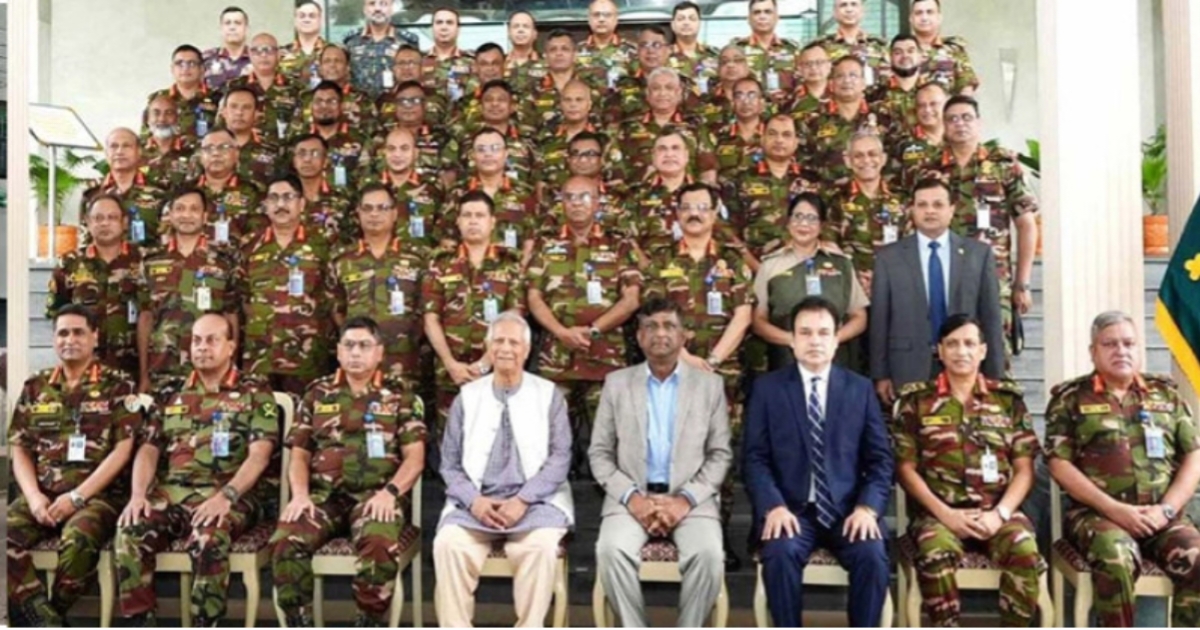 ২০ জুলাই (রোববার) সকালে ঢাকা সেনানিবাসে ‘সেনাসদর নির্বাচনী পর্ষদ–২০২৫’ এর উদ্বোধনী অনুষ্ঠানে প্রধান অতিথির বক্তব্যে এসব কথা বলেন অন্তর্বর্তী সরকারের প্রধান উপদেষ্টা অধ্যাপক ড. মুহাম্মদ ইউনূস।