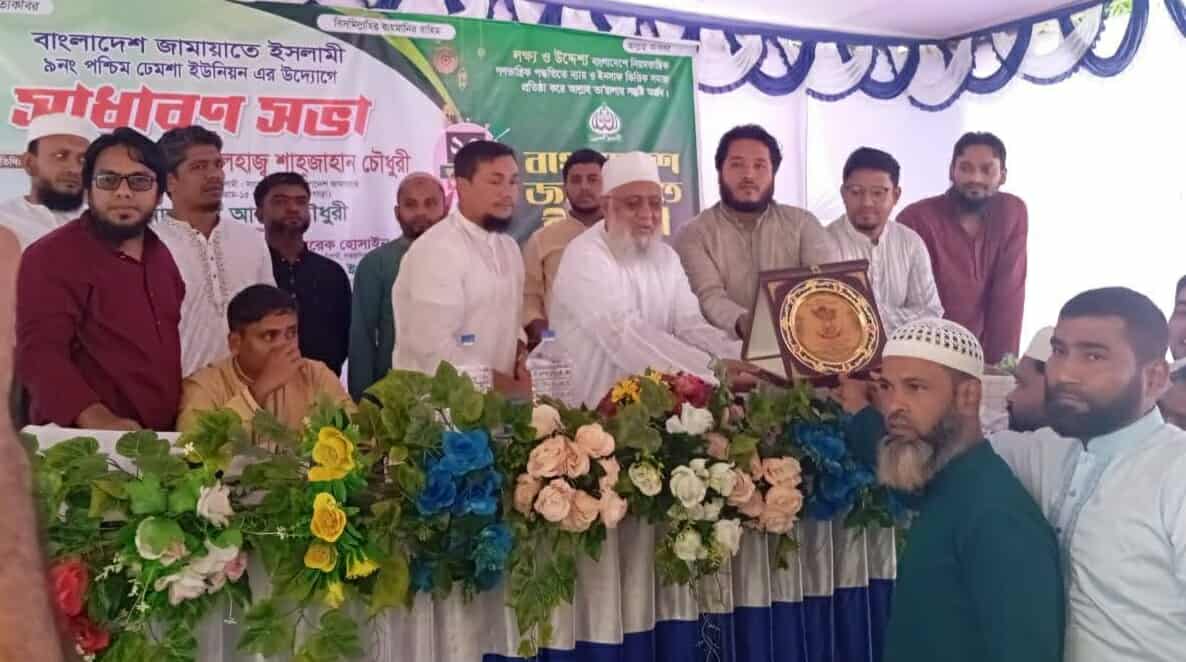 বাংলাদেশ জামায়াতে ইসলামী, পশ্চিম ঢেমশা ইউনিয়নের উদ্যোগে এক সাধারণ সভা গতকাল শুক্রবার সকালে অনুষ্ঠিত হয়েছে। এতে প্রধান অতিথি হিসেবে উপস্থিত ছিলেন, সাবেক প্যানেল স্পিকার, বাংলাদেশ জামায়াতে ইসলামীর কেন্দ্রীয় কর্ম পরিষদ সদস্য ও সাবেক সংসদ সদস্য আলহাজ্ব শাহজাহান চৌধুরী।