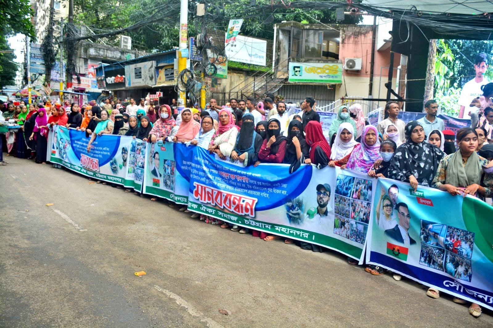 চট্টগ্রামের নাগরিক ঐক্য সমাজের ব্যানারে গতকাল ২৫ জুলাই (শুক্রবার) বিকেলে চট্টগ্রাম প্রেস ক্লাবের সামনে আয়োজিত মানববন্ধন থেকে এ দাবি জানানো হয়।