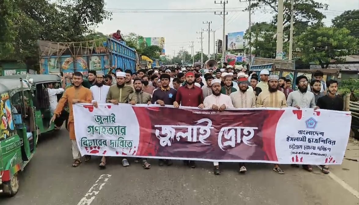 চট্টগ্রামের সাতকানিয়ায় বাংলাদেশ ইসলামী ছাত্রশিবিরের চট্টগ্রাম দক্ষিণ জেলা শাখার উদ্যোগে শুক্রবার (১ আগস্ট) “জুলাই দ্রোহ মিছিল” অনুষ্ঠিত হয়েছে। মিছিলে অংশ নেয় শত শত কর্মী ও সমর্থক।