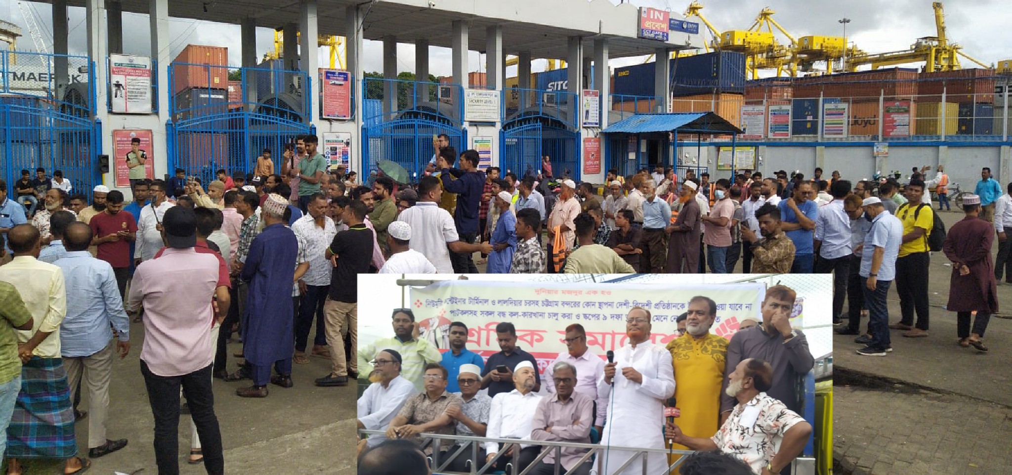 এনসিটি ও লালদিয়া চর ইজারা না দেওয়ার দাবিতে শ্রমিকদের বন্দর এলাকায় সমাবেশ