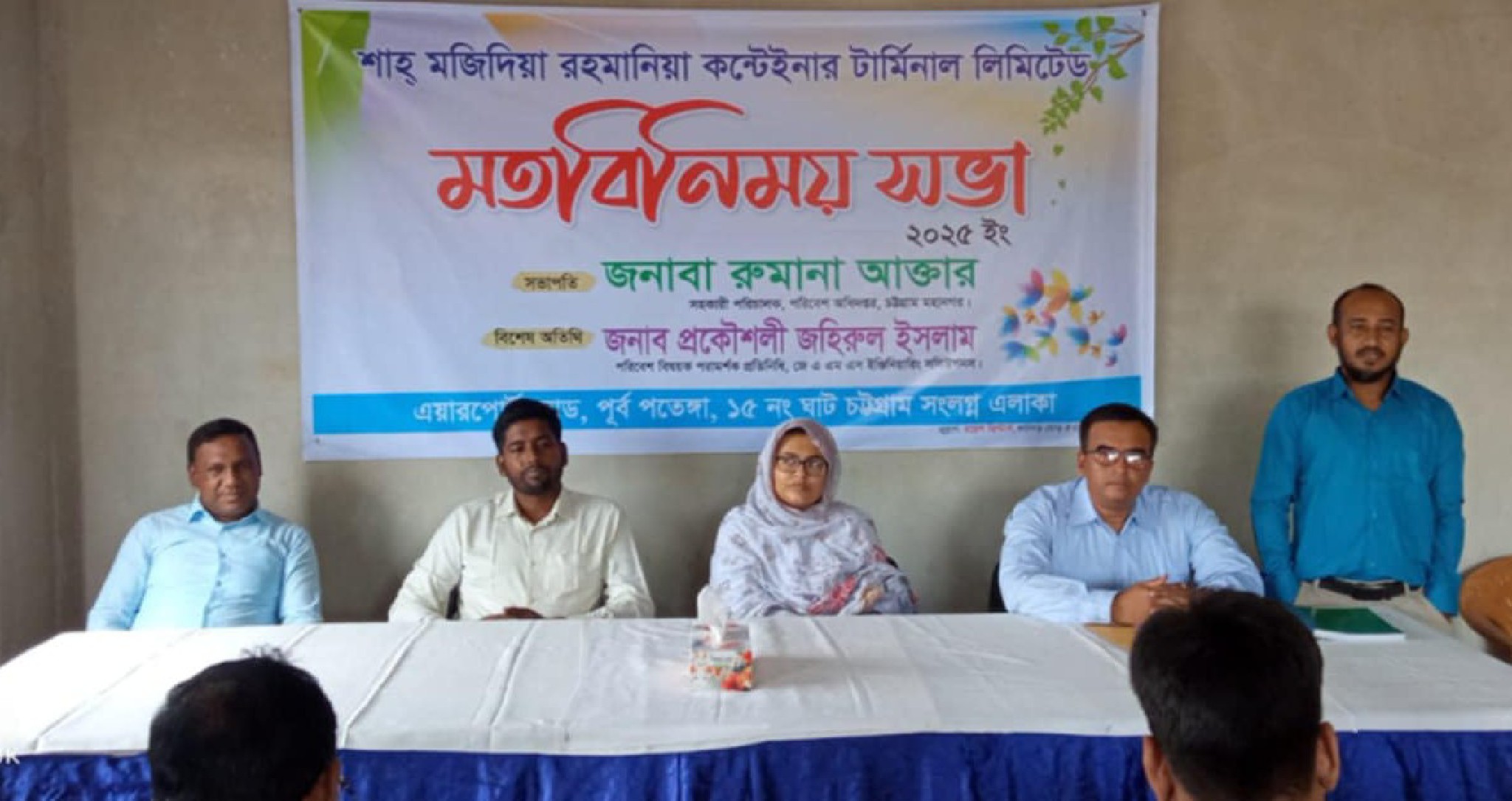 চট্টগ্রামে শাহ্ মজিদিয়া রহমানিয়া কন্টেইনার টার্মিনাল লিমিটেড-এর উদ্যোগে এক মতবিনিময় সভা অনুষ্ঠিত হয়েছে। ২৯ সেপ্টেম্বর (সোমবার) সকালে পতেঙ্গার এয়ারপোর্ট রোড সংলগ্ন ১৫ নং ঘাট এলাকায় প্রস্তাবিত টার্মিনাল প্রাঙ্গণে এ সভার আয়োজন করা হয়।
