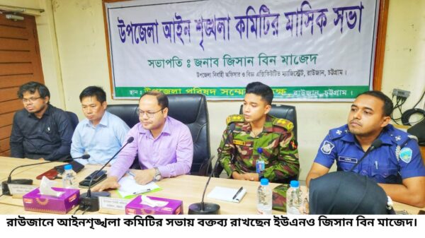 রাউজান উপজেলা প্রশাসনের উদ্যোগে মাসিক আইনশৃঙ্খলা কমিটির সভা অনুষ্ঠিত হয়েছে।