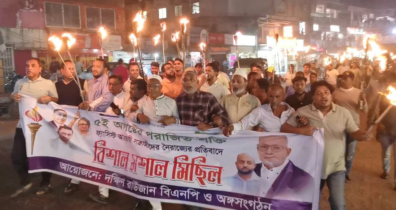 লকডাউনের নামে অরাজকতা ও নৈরাজ্যের প্রতিবাদে দক্ষিণ রাউজান উপজেলা বিএনপি ও এর অঙ্গ সংগঠনের উদ্যোগে এক বিশাল মশাল মিছিল ও প্রতিবাদ সমাবেশ অনুষ্ঠিত হয়েছে।