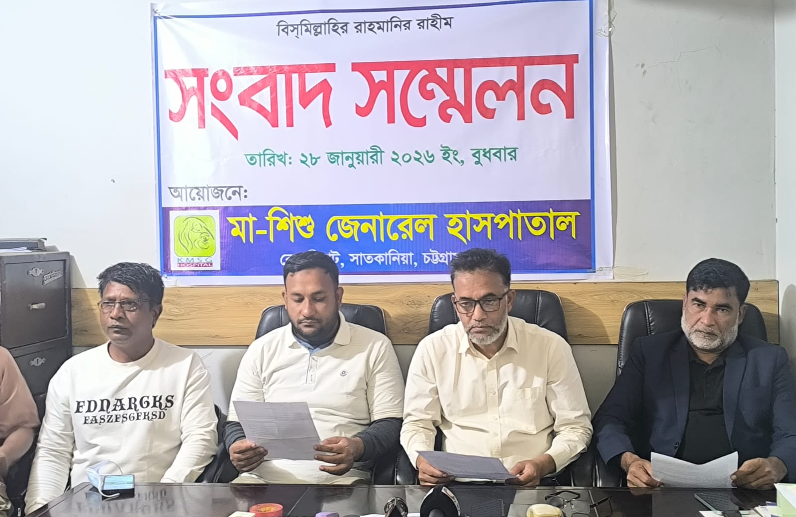 কেরানীহাট মা -শিশু জেনারেল হাসপাতালের সামনে ইট বালু ফেলে প্রতিবন্ধকতা সৃষ্টি করায় সংবাদ সম্মেলন করেছে হাসপাতাল কর্তৃপক্ষ