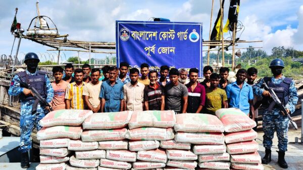 মায়ানমার থেকে সিমেন্টের বিনিময়ে মাদক পাচারকালে ৭৫০ বস্তা সিমেন্ট ও ২০ জন আটক