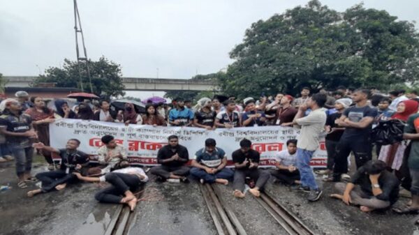 স্থায়ী ক্যাম্পাসের দাবিতে রবীন্দ্র বিশ্ববিদ্যালয় শিক্ষার্থীদের রেল অবরোধ
