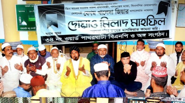 ৩৪নং পাথরঘাটা ওয়ার্ড বিএনপির উদ্যোগে খালেদা জিয়ার রুহের মাগফেরাত কামনায় দোয়া মাহফিল